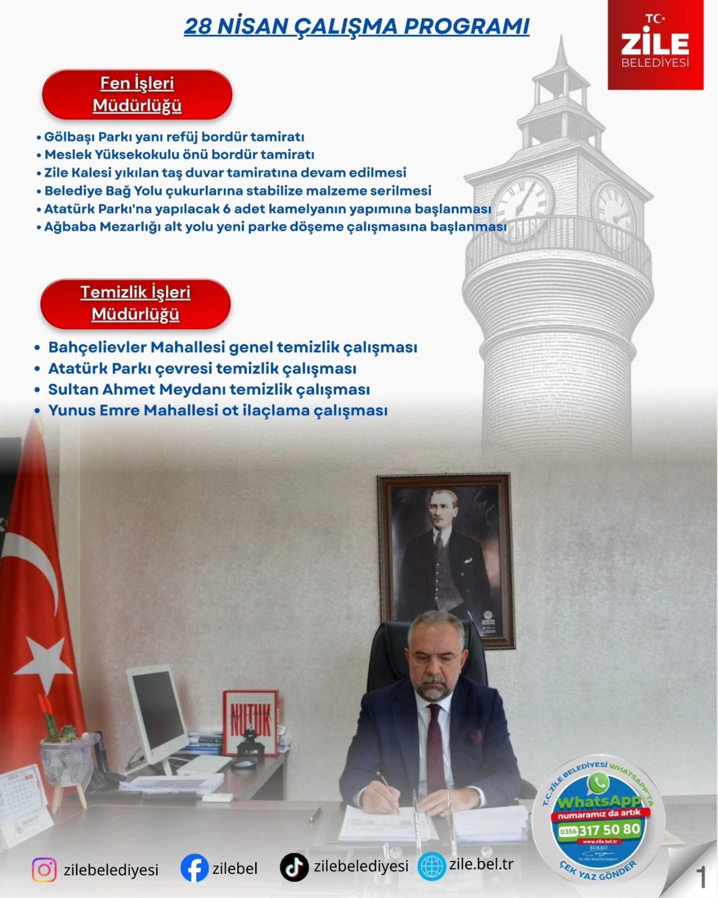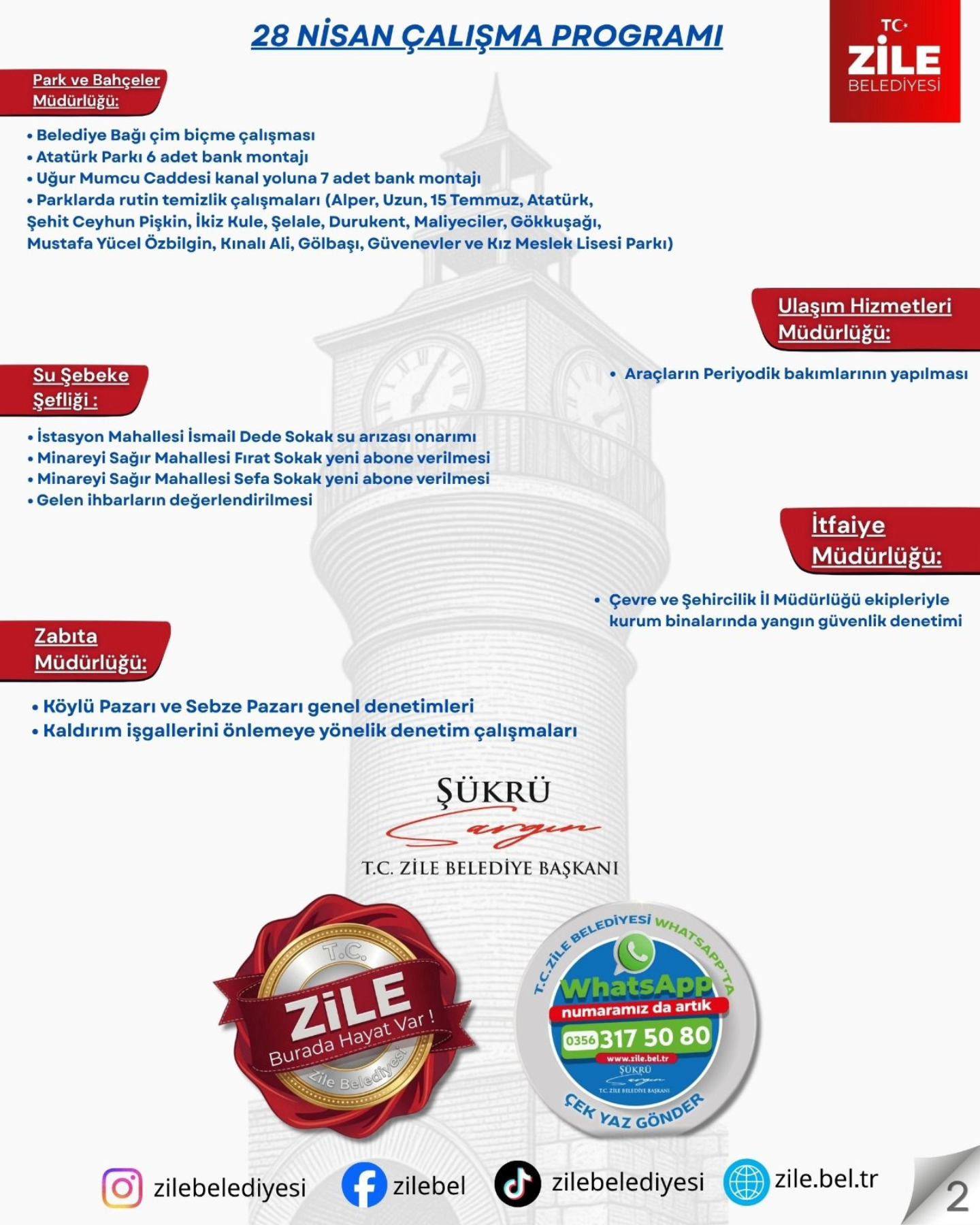 T.C. ZİLE BELEDİYESİ 28 NİSAN ÇALIŞMA PROGRAMI